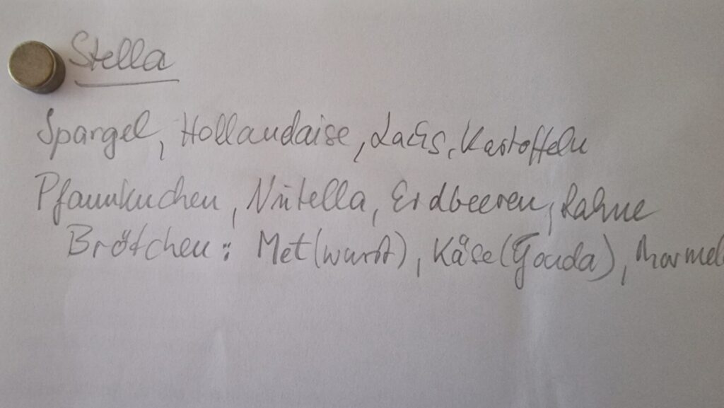 Die Überlegungen laufen – welche Rezepte dürfen mit auf die Reise? Denn hier ist jede und jeder ein Koch. Aber erst müssen wir mit den Einkaufslisten die Läden stürmen. Eine Gourmande und eine kleine Süßschnute haben wir auf jeden Fall dabei , wie man an den Vorschlägen für kindgerechte Ernährung leicht erkennen kann .